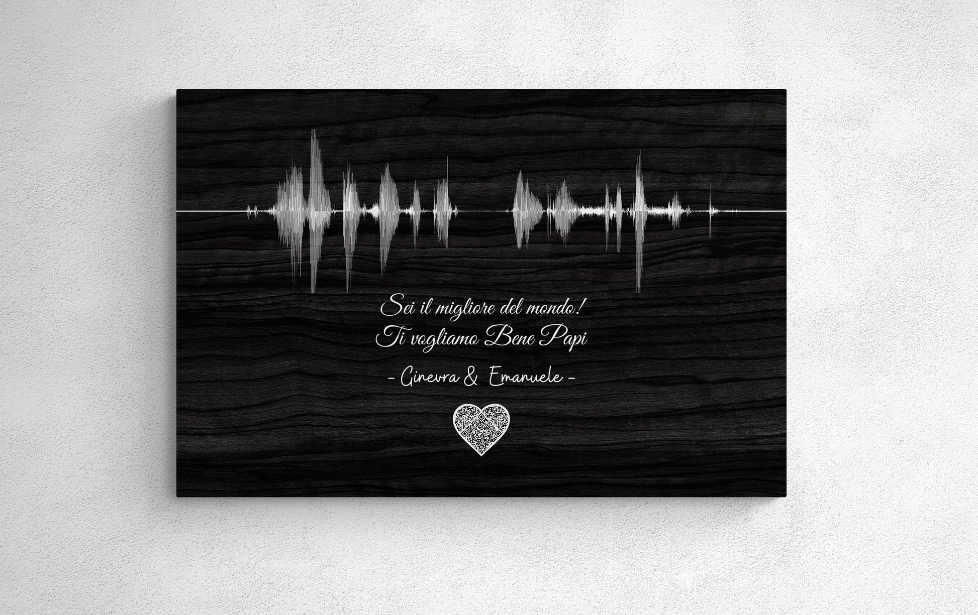 - Il tuo Papà potrà riprodurre il tuo messaggio infinite volte: Il QR cuore può essere inquadrato con qualsiasi applicazione del telefono per scannerizzare codici QR. Una volta scannerizzato, riprodurrà sul tuo cellulare il file che hai scelto.
