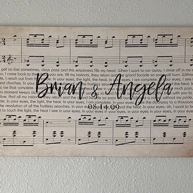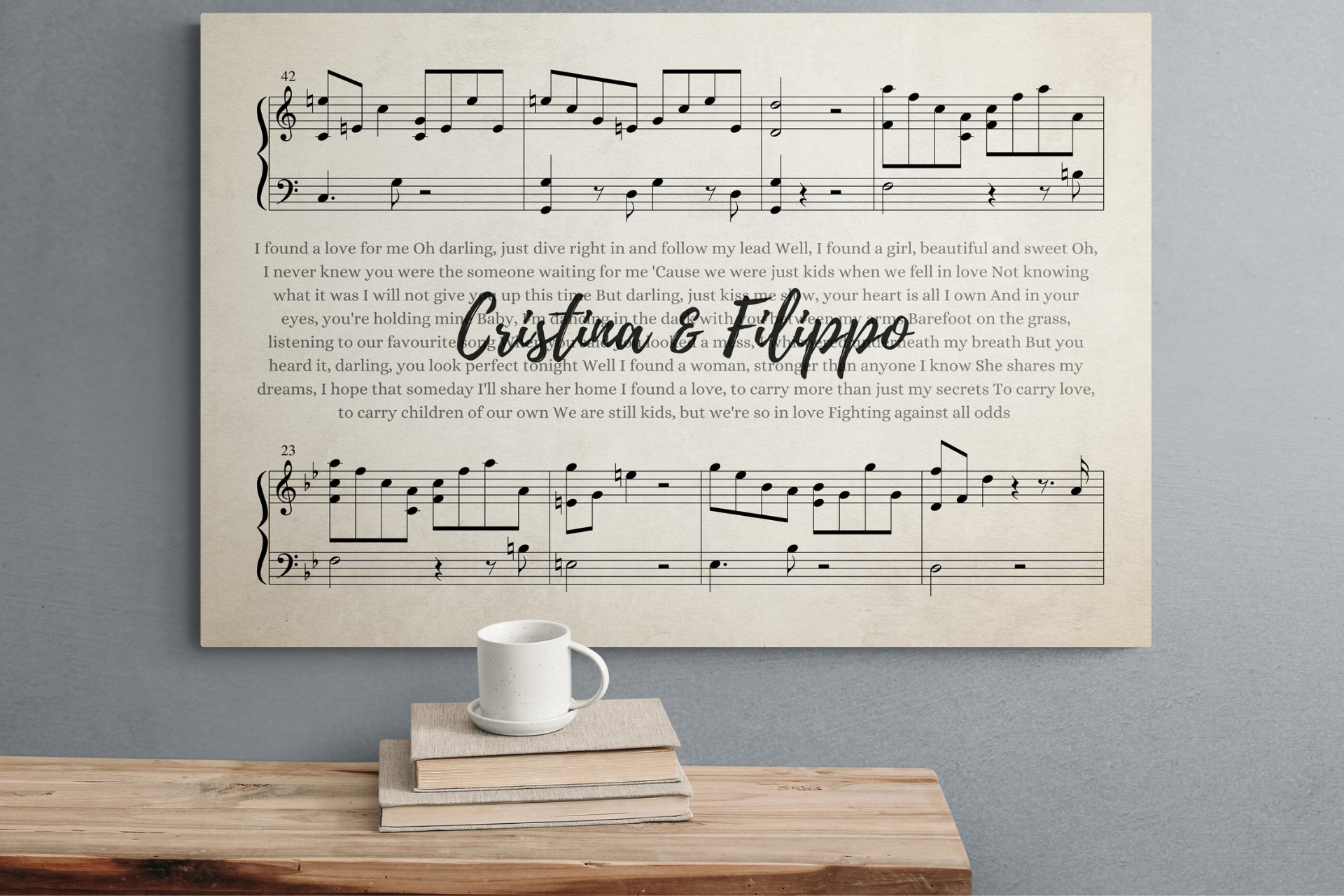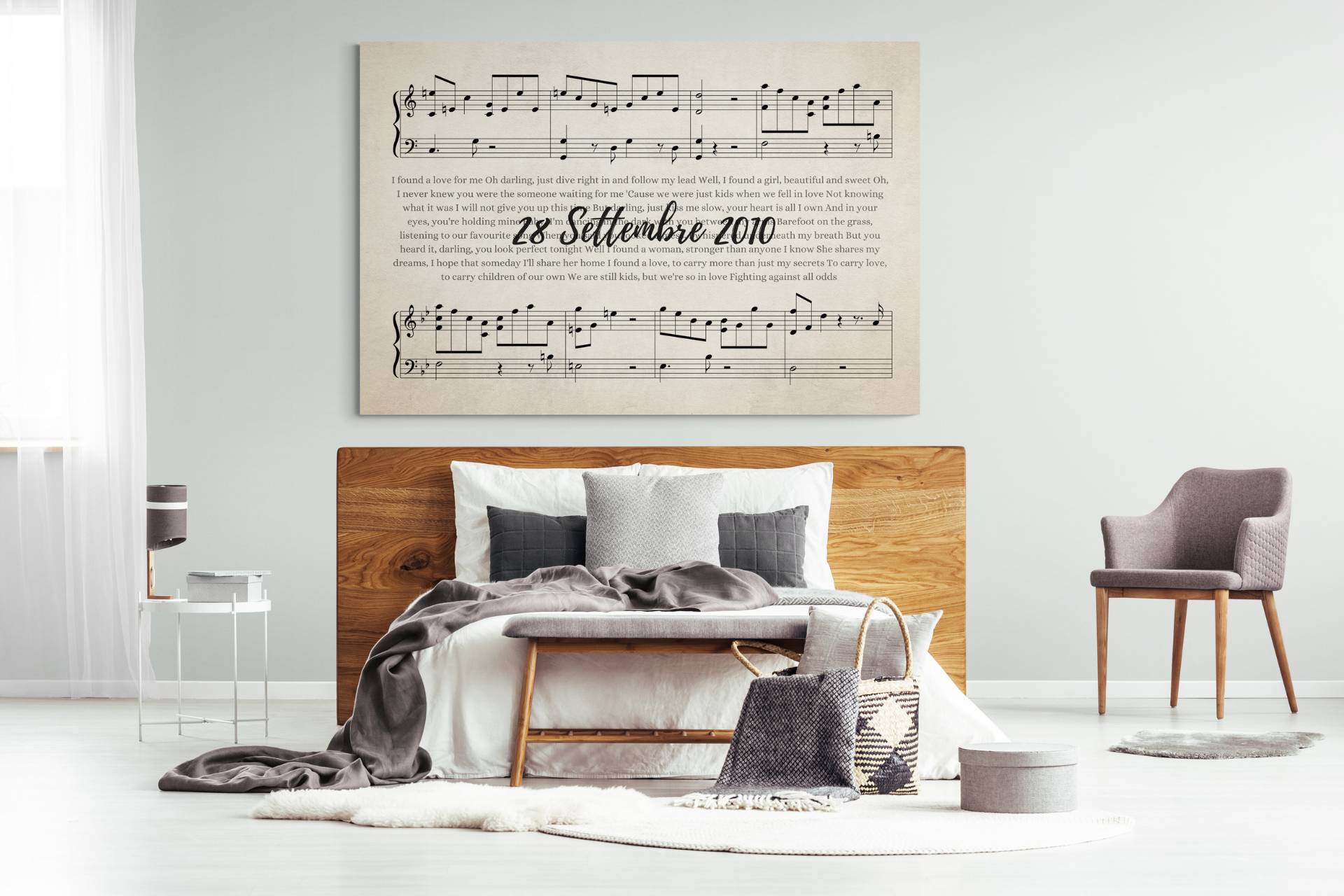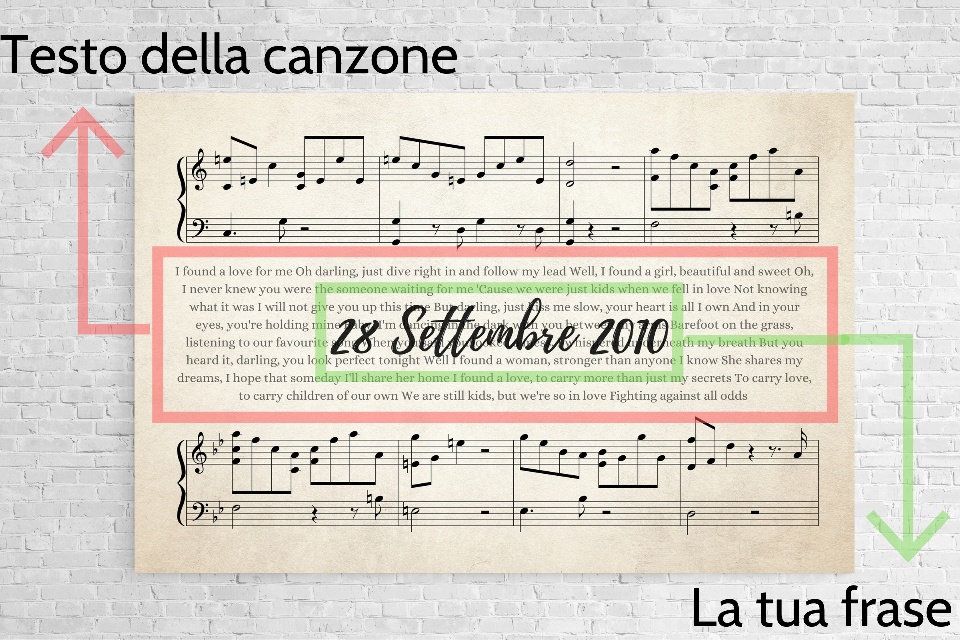 Noi trascriveremo il testo della tua canzone su questa elegante stampa musicale e la realizzeremo con estrema cura e attenzione per ogni dettaglio.